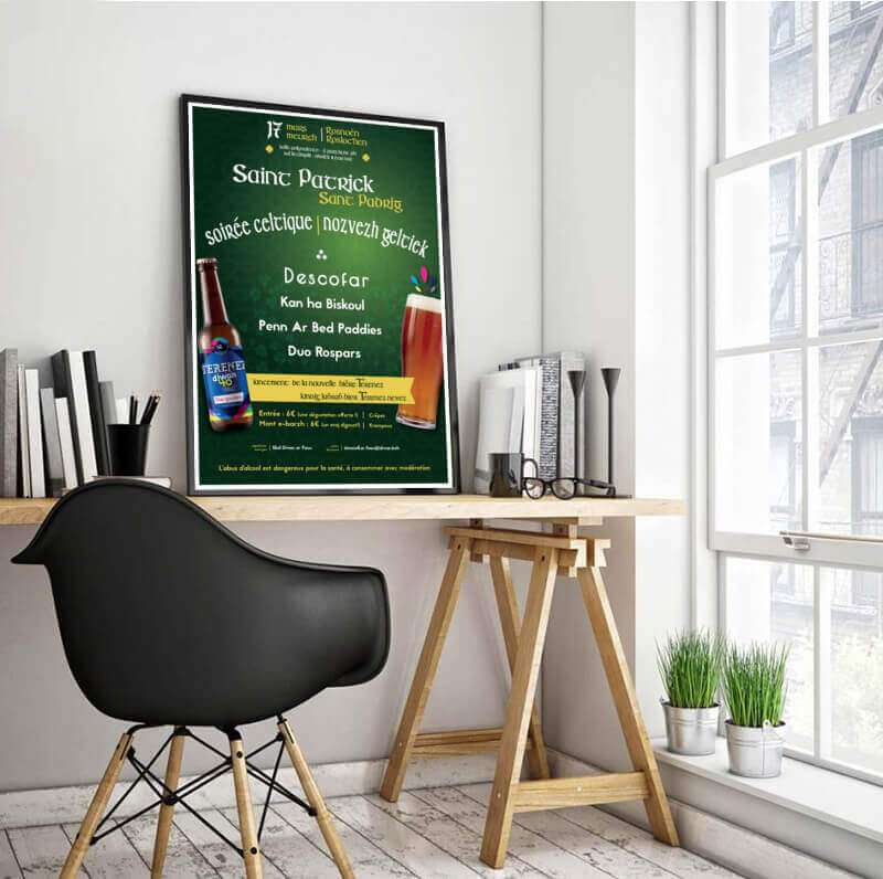 Découvrez nos réalisations print et web conçues pour des TPE et PME de Brest et de la région Bretagne. Concernant nos créations print, nous réalisons pour vous des affiches, flyers, plaquettes, catalogues produits, logos et identités graphiques. Notre travail web est principalement constitué de créations de sites web, d’infographies, de newsletters, et de webdesign.  N’hésitez pas à nous contacter pour vous accompagner dans la réalisation de vos projets graphiques.